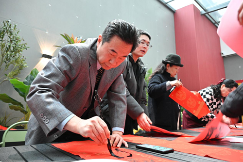 活動當天,鄭州市文聯的書法家們受邀來到現場。他們個個精神飽滿,手執毛筆,在一張張紅紙上揮灑自如,書寫著寓意深遠的新年序言。這些序言既是對過去一年的總結,也是對新年的美好期許。書法家們的精彩表演贏得了現場觀眾的連連稱贊,租戶們紛紛表示:“書法家們寫的字真是太好了!‘福’字看著就喜慶,春聯的寓意也都非常美好。”